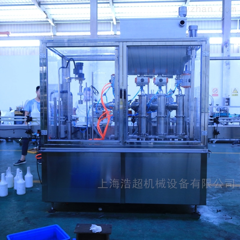 本機是液體生產(chǎn)線中的灌裝旋(軋)蓋主機,適用于玻璃瓶或者塑料瓶的灌裝、上蓋、封口。采用直線式或圓盤定位式灌裝,電磁振動送蓋,全自動旋(軋)蓋,具有無瓶不灌功能。